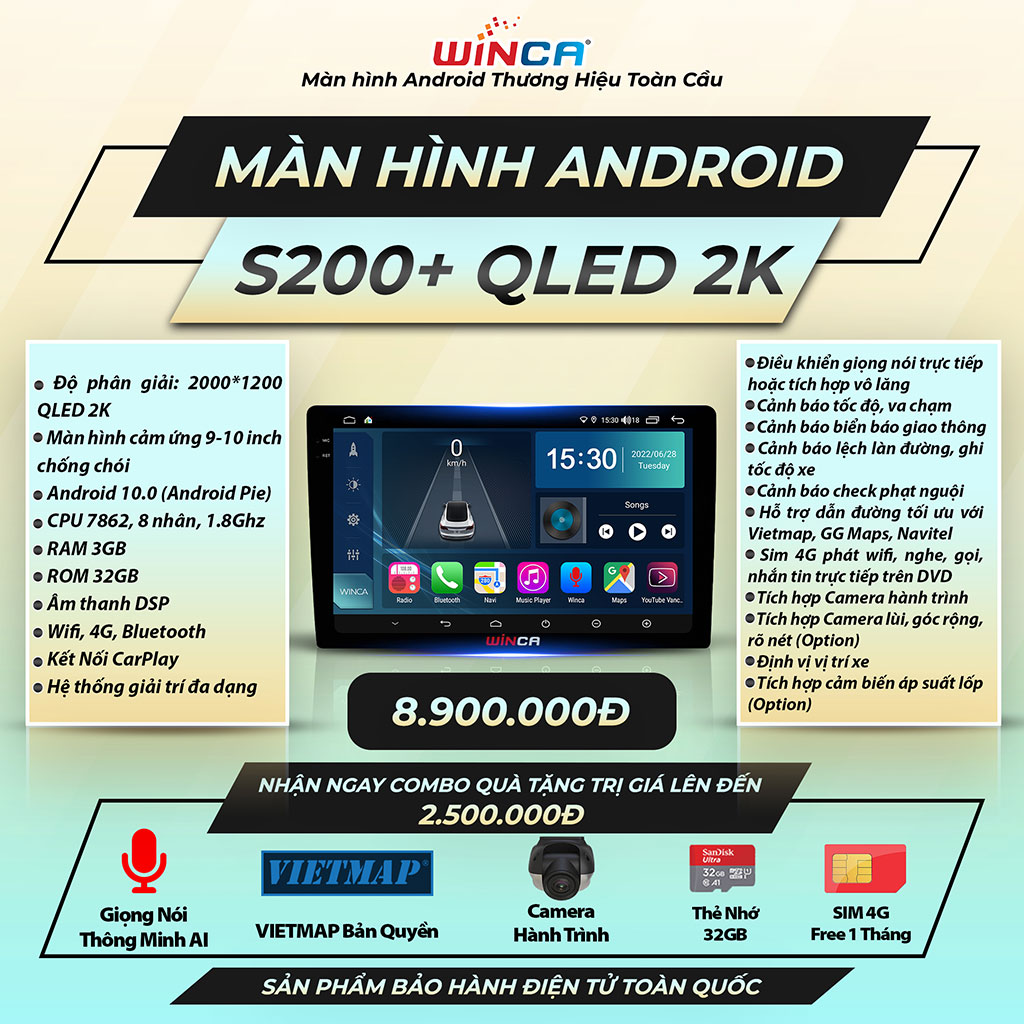 Màn hình ô tô thông minh Winca S200+ QLED 2K sở hữu giao diện hiện đại, chuẩn công nghệ.