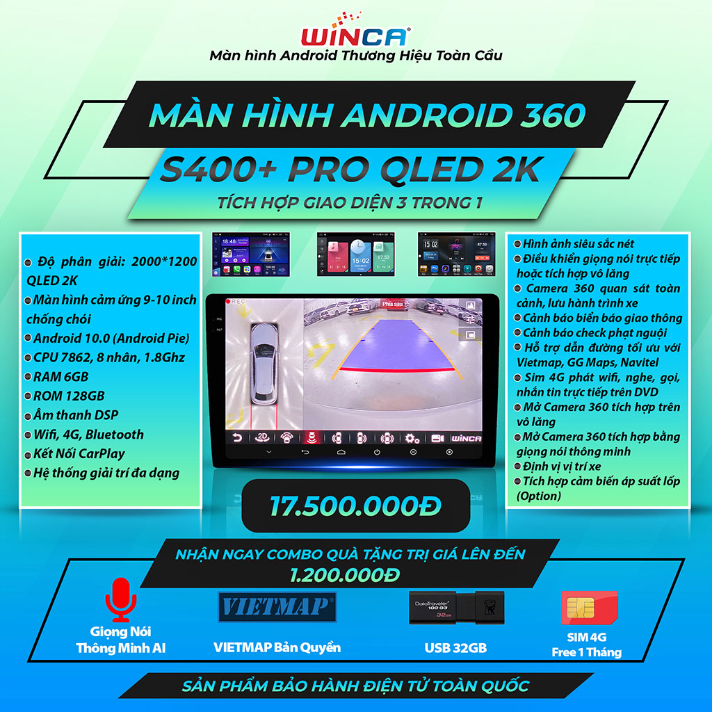 Đánh giá Màn Hình DVD Android Ô Tô Winca S400+ PRO 360 QLED2K